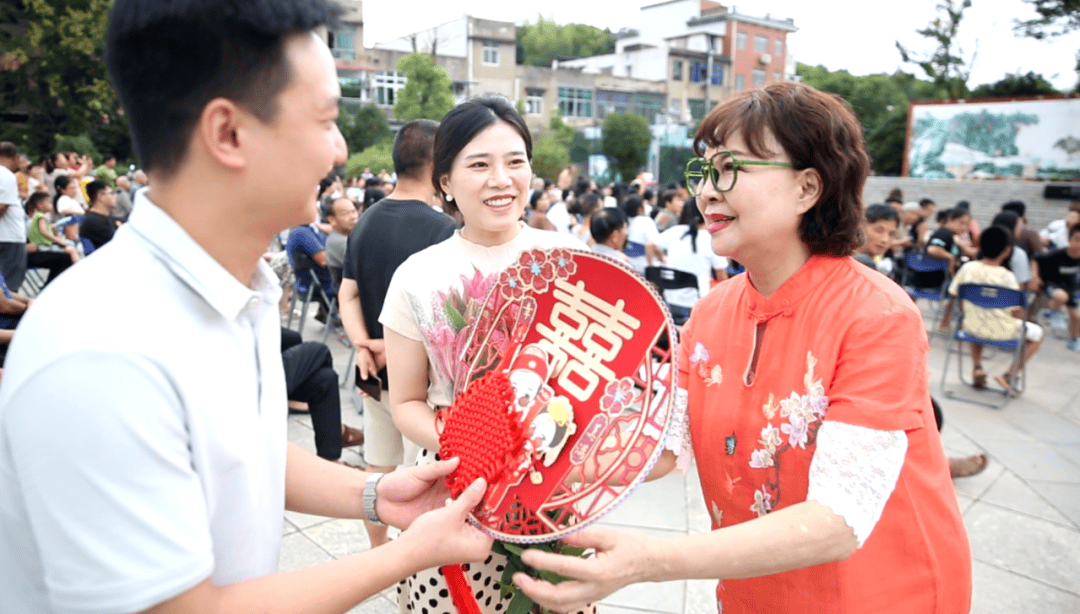 值得一提的是,在家喻户晓的情景喜剧《一家老小向前冲》扮演“祝婶子”的著名表演艺术家刘赵黔老师还结合七夕节的由来,为石燕湖村的喜结良缘的新人们颁发结婚证并赠送跳马镇当地种植的百合花,寓意百年好合的美好祝福,倡导全社会积极培育和践行社会主义核心价值观,大力推进婚俗领域移风易俗,传承发展中华优秀婚姻家庭文化,引导广大青年树立正确的婚恋观和价值观。