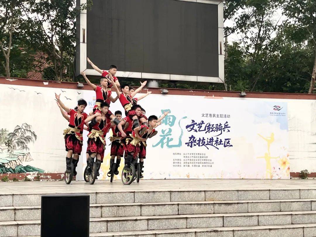 8月28日下午5点,由雨花区文联主办的雨花“文艺轻骑兵·杂技进社区”文艺惠民主题演(第二场)在长株潭绿心核心区域跳马镇石燕湖村百姓大舞台启幕。