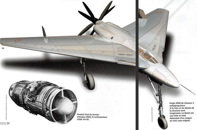 对于压力螺旋桨的驱动方式,当时并没有明确的解决方案,比较传统的是单核心或双核心的ATAR 201通过连杆直接驱动在机头部的螺旋桨。