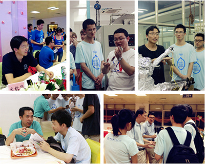 早在正式开营的半个月前,来自学院和微尺度实验室的35名学生志愿者,就已经开始有条不紊地着手准备工作。在这些志愿者中,有些曾经是夏令营的营员,期待将自己当初情定科大的经历与学弟学妹们分享;有些则是热衷志愿服务事业,希望能通过自己的努力为志向来科大的学生提供最贴心的帮助。从会前向每一位营员确定报道事宜,到每场报告为大家准备矿泉水,再到营员们每一声充满信任的“组长”,哪儿有营员,哪儿就有他们忙碌的身影,就有他们无微不至的关怀。