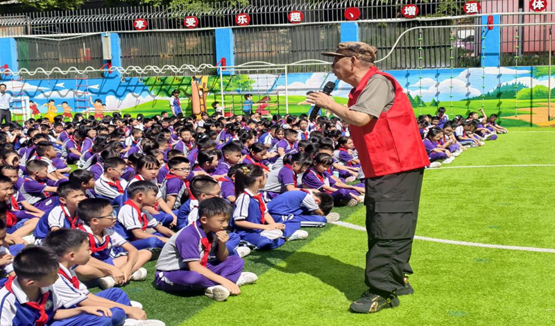 在教室内,退役老兵化身为学生们的“老兵爷爷”,他们结合自身在军营的服役经历、参与任务的真实片段,用朴实无华的语言讲述了保家卫国的热血往事,从艰苦的训练日常到危急的任务瞬间,将“爱国”与“责任”转化为看得见、听得懂的鲜活故事,让学生们直观感受革命先辈与当代军人的奉献精神。此外,他们还现场示范标准军姿,手把手教学生们挺胸抬头、收腹站直;带领大家齐唱激昂的军歌,嘹亮的歌声回荡在整个校园,让学生们在体验中感受责任与担当。