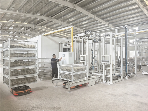八月的横州,茉莉花开正盛。8月26日,在横州市校椅镇清雷茶业极萃园厂房内,8台AGV智能搬运机器人正沿预设路线平稳穿梭,技术人员紧盯控制屏,对即将投产的AI数智化茉莉花(茶)生产线进行最后一轮数据校准。“这条智能生产线的调试工作已基本完成,近期我们便能开启茉莉花茶全自动批量生产模式。”厂长王建权语气中透着期待。
