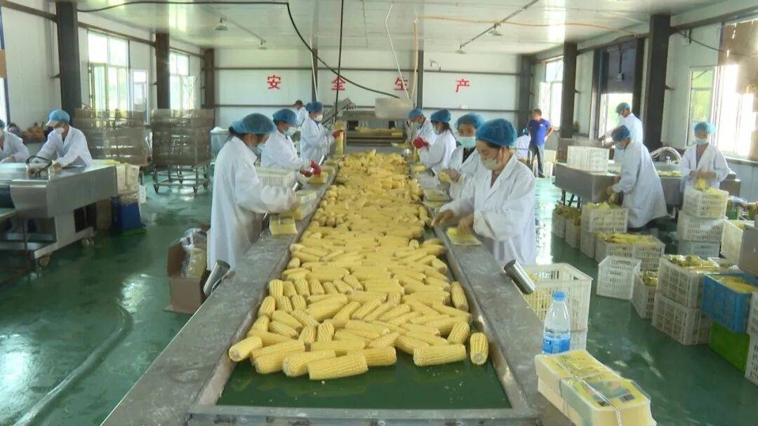 厂区内,同样是一派热火朝天的繁忙景象,圆润饱满的鲜食玉米整齐地摆放在传送带上,经过剥皮、挑选、切尖切根、清洗包装、蒸煮装箱等程序后,完成约两小时的高效锁鲜工艺。从源头牢牢守住了鲜食玉米的脆嫩口感与营养。值得一提的是,这条鲜食玉米生产线是杨家乡模范村近几年新引进的设备,让村集体经济在满足市场需求上有了更足的底气。