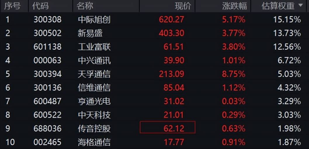 行情面上,通信ETF(515880)标的指数成分股迎来普涨,从前十大成分股来看,整体表现均飘红,其中,天孚通信、中际旭创、工业富联、新易盛迎大涨。